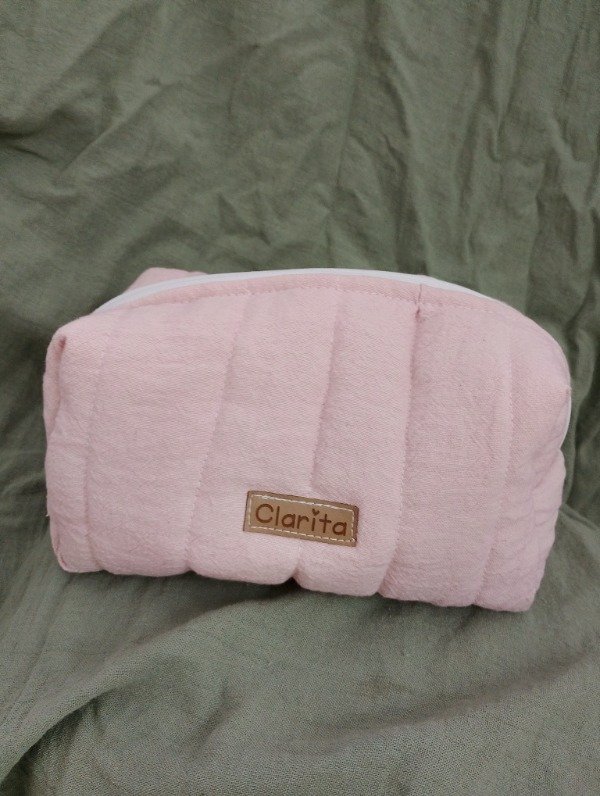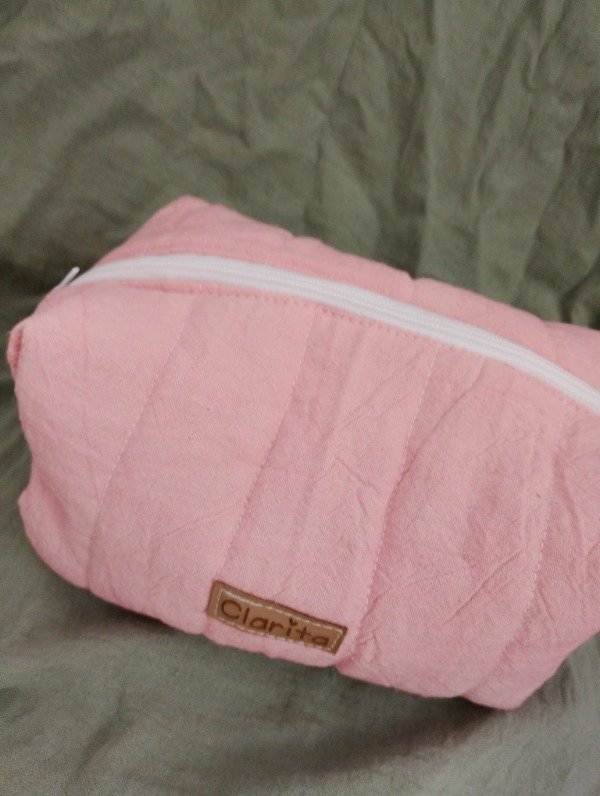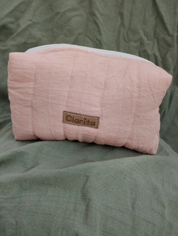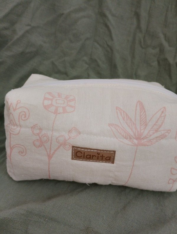 Neceser de tussor teñido y sublimado en forma artesanal.